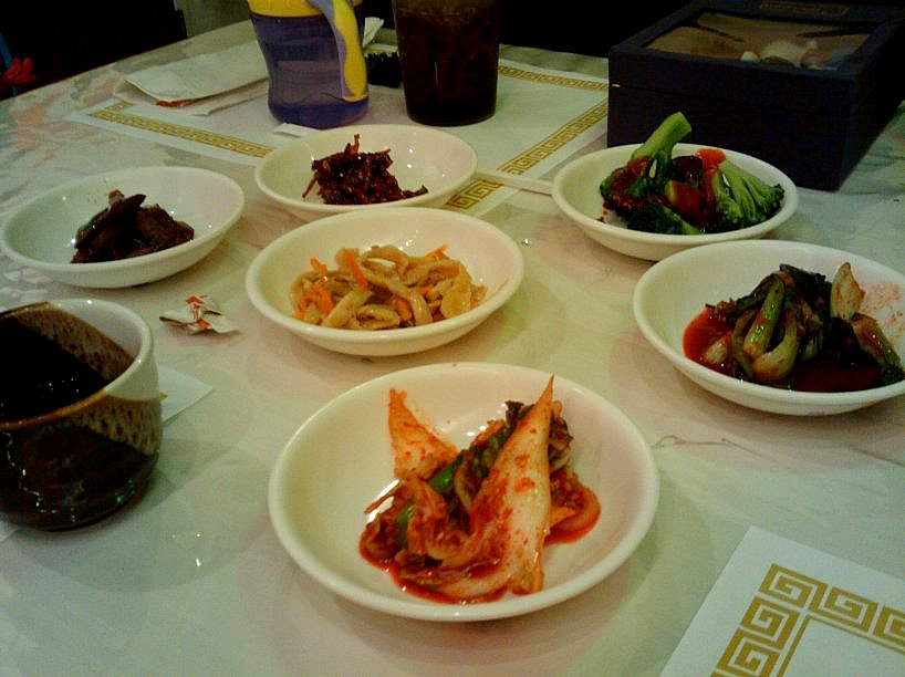 After finishing our dumplings, the always present banchan were brought out to the table. During my last visit, two Japanese bento boxes were presented to us, each containing four varieties of banchan. This time around,